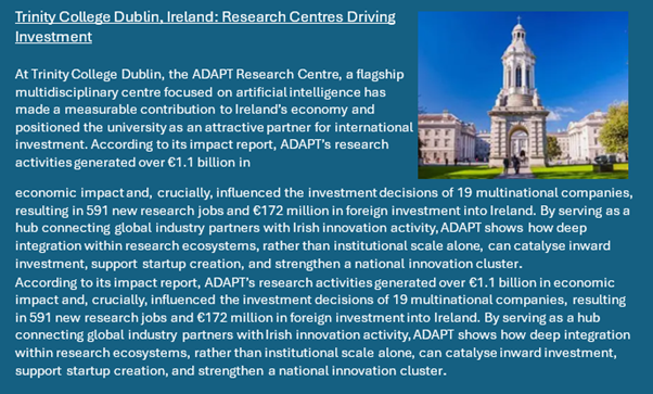 Importantly, these findings align with the wider evidence base on FDI in knowledge-intensive sectors, which show that investors prioritise access to skilled talent, research capability, and innovation ecosystems over institutional prestige alone. The implication for policymakers and university leaders is clear: attracting FDI is less about institutional hierarchy and more about strategic positioning, collaboration, and ecosystem development.